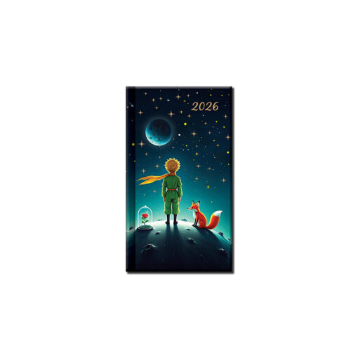 Exkluzívny mini diár s motívom MALÝ PRINC. Diár je v pevnej väzbe s prednou penou, s metalickým efektom. Slovenské kalendárium.